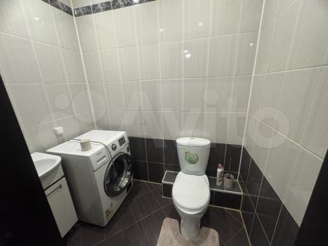 Санузел совмещенный, оснащен современной сантехникой и стиральной машиной. В прихожей предусмотрены удобные шкафы для хранения вещей.