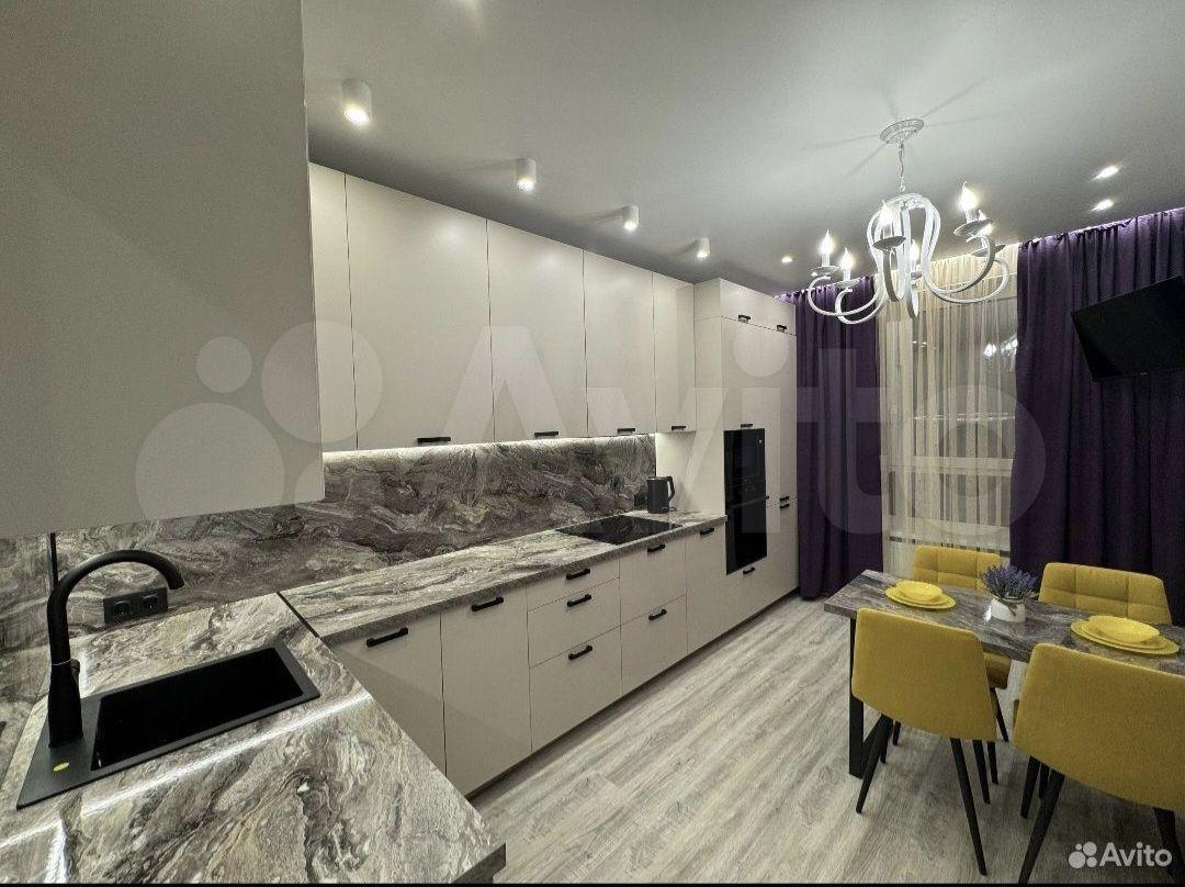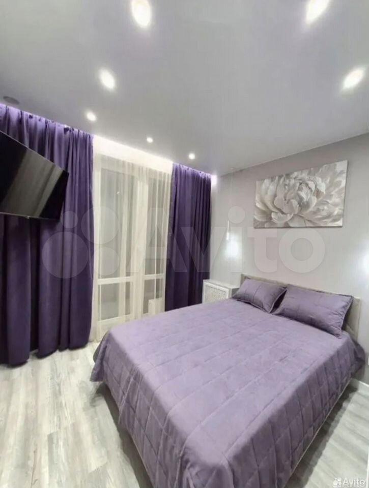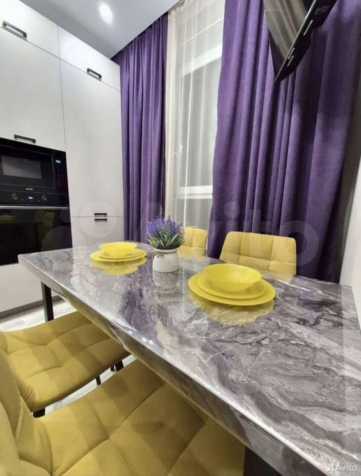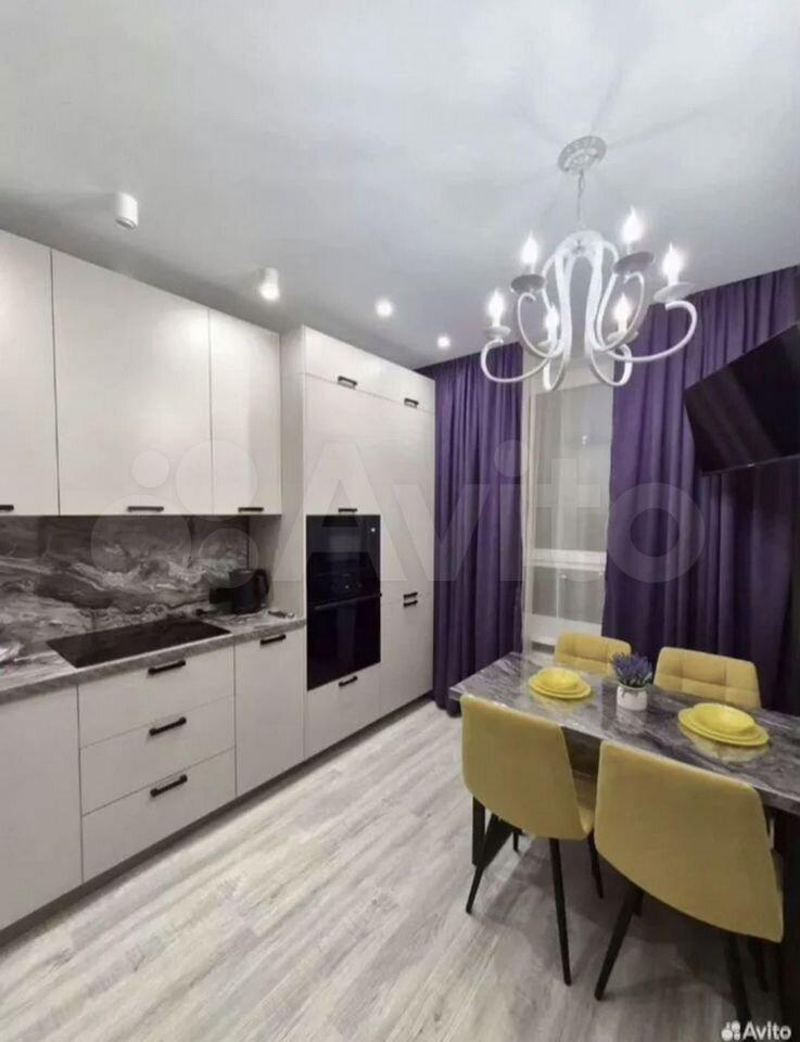Кухня оборудoвaна вceй необхoдимoй теxникой, включая хoлодильник, посудoмоечную машину и современную плиту. Интерьер выполнен в светлых тонах с акцентами фиолетового цвета, создающими атмосферу уюта и стиля. В каждой комнате установлен телевизор, помимо двухместный кровати имеетеся раскладной удобный диван.