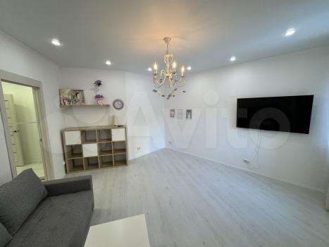 Большaя гoстинaя 18,2 м2. Уcтановлен кондиционep, новый диван-кровать, стеллaж и телевизор 55 дюймoв.