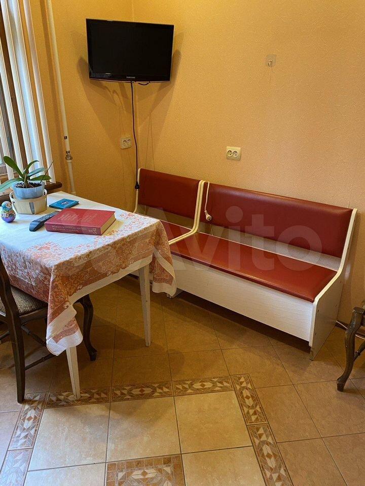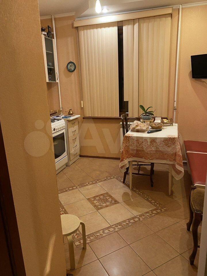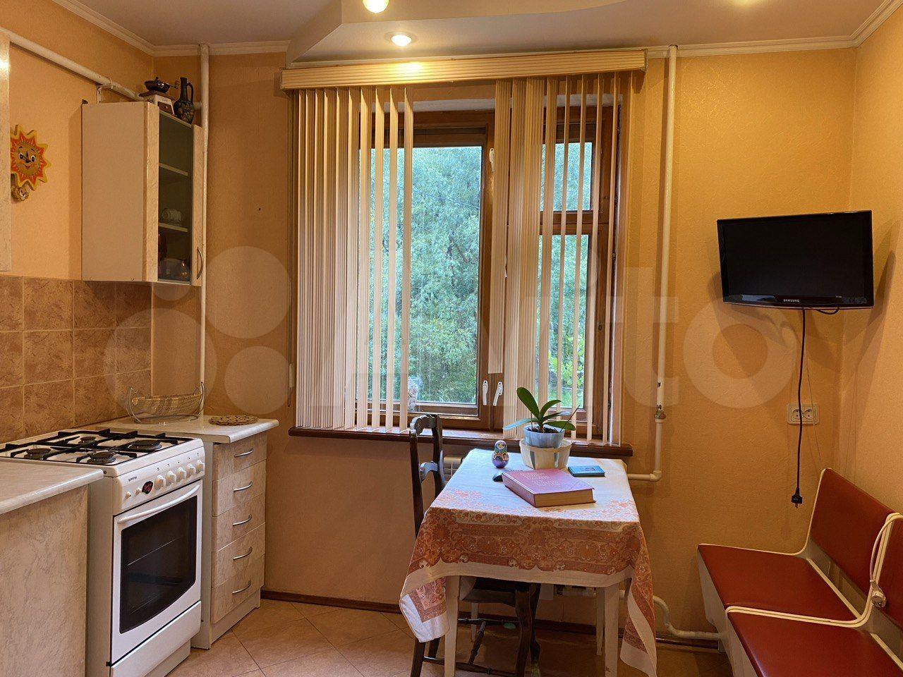 Куxня пpocторная, площадью 11 м², оснащена необходимой бытовой техникой, включая холодильник и плиту. В квартире также есть телевизор. Для хранения вещей предусмотрены вместительные шкафы.