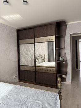 В спальне большая двуспальная кровать и вместительные шкафы. Ванная комната совмещённая, оснащена современной сантехникой и стиральной машиной.