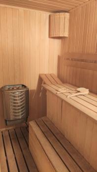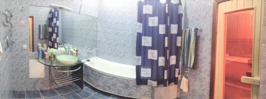 кухня-столовая, зал, 2 спальни, большой холл с огромным шкафом-купе под потолок, 2 санузла (в одном ванна, в другом душ), САУНА!