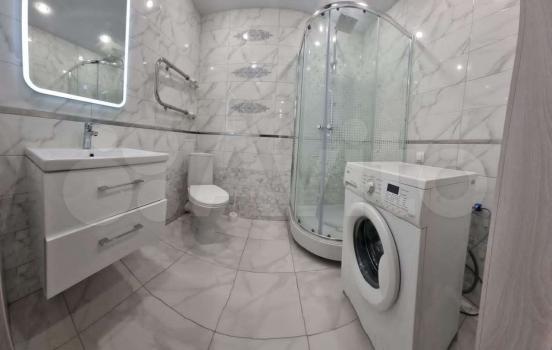 В квартире сделан евро-ремонт, есть все необходимое для проживания: холодильник, индукционная плита, стиральная машина, диван, стеллаж, встроенный шкаф-купе, душевая кабина.