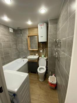 В квартире пластиковые окна, мраморные подоконники, металлическая дверь, хороший ремонт из качественных материалов, на полу ламинат. Точечное освещение, 2-х уровневые потолки, с/у совмещён в современном стильном кафеле. Новая хорошая сантехника. Кондиционер, холодильник, стиральная машина, 2-х спальная кровать 1,6 х 2,0 м., шкаф, встроенный, новый кухонный гарнитур, стол, стулья, прихожая.