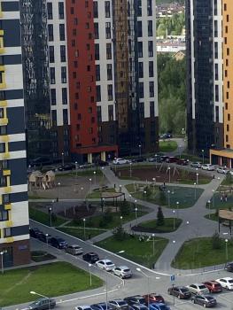 Благоустроенная зеленая территория двора с детской площадкой, спортивной площадкой, охраняемая территория - видеонаблюдение.
