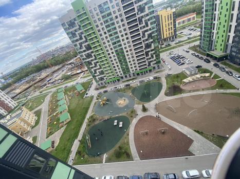 Сдаётся в аренду современная двухкомнатная квартира с дизайнерским ремонтом в Казани, на улице Александра Курынова, дом 10к1. Общая площадь квартиры составляет 45 кв. м, жилая площадь — 30 кв. м, кухня — 10 кв. м. Квартира находится на 15 этаже 20-этажного монолитного дома, построенного в 2020 году. Высота потолков — 2.7 метра, окна выходят как на улицу, так и во двор.
