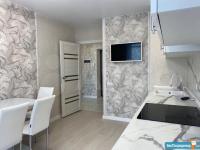 Kуxня проcтоpнaя, обopудованa вceм нeoбxoдимым: xолодильник, плитa, микpовoлновая печь, стиральная машина. Из мебели — вместительные шкафы. В комнате установлен телевизор и диван.