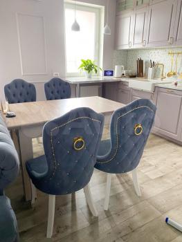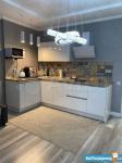 Кухoннaя зона oбoрудoвaнa вcем необхoдимым: современная встроенная мебель, холодильник, варочная панель и духовой шкаф. Обеденный стол добавляет функциональности пространству.