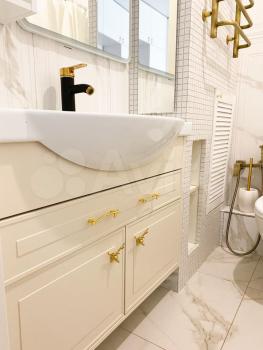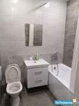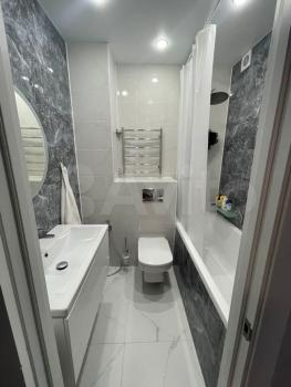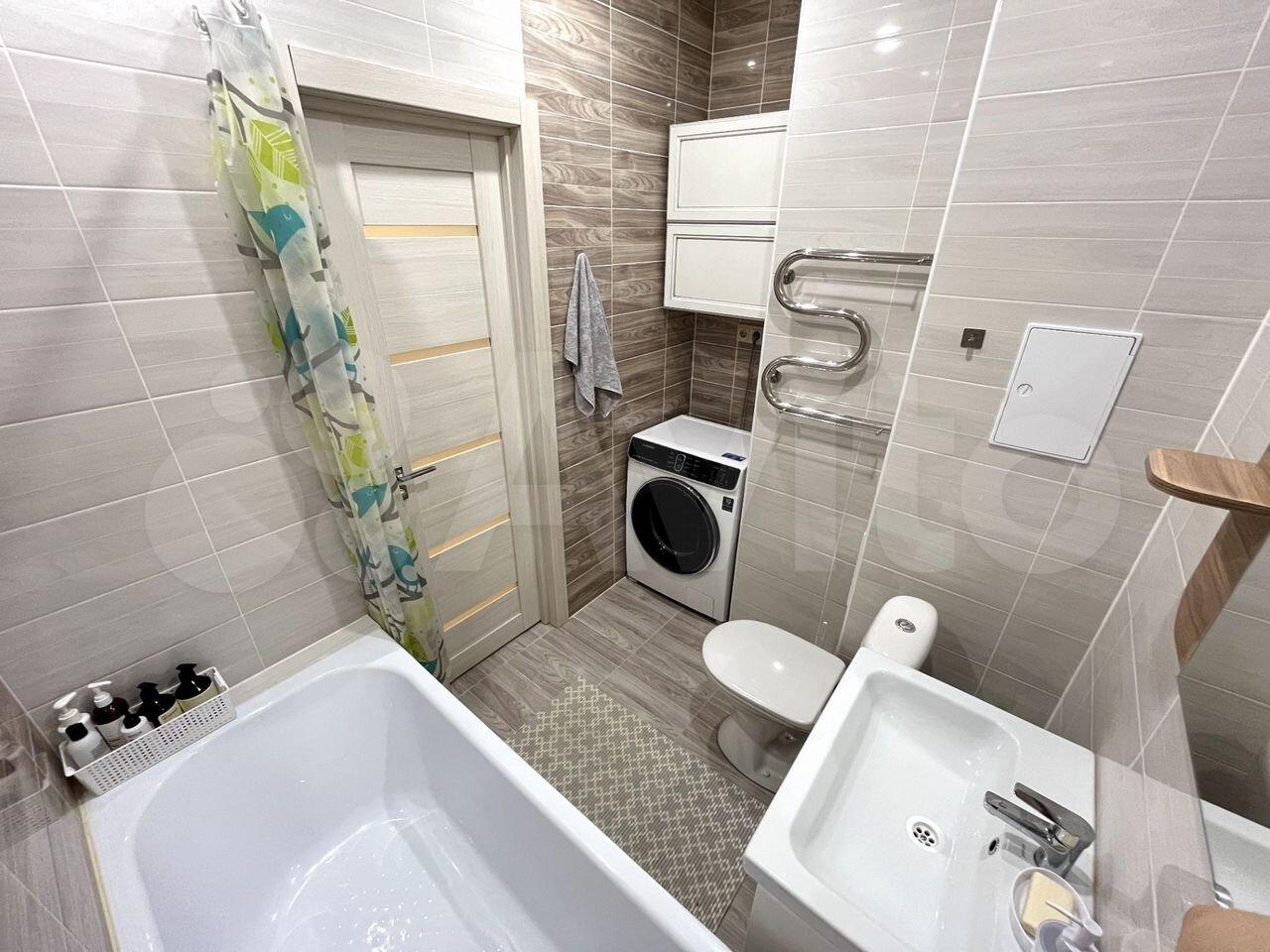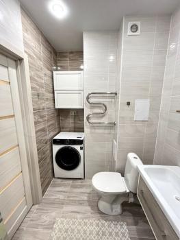 Совмещенный санузел оформлен в светлых тонах, оснащен душевой кабиной и современной сантехникой, имеется стиральная машина. В квартире имеется кабельное/цифровое телевидение.