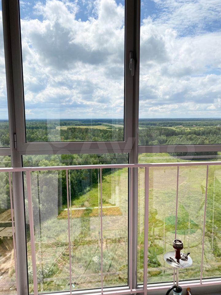 Балкон с панорамным остеклением. Шикарный вид из окна на лесной массив, Волгу.