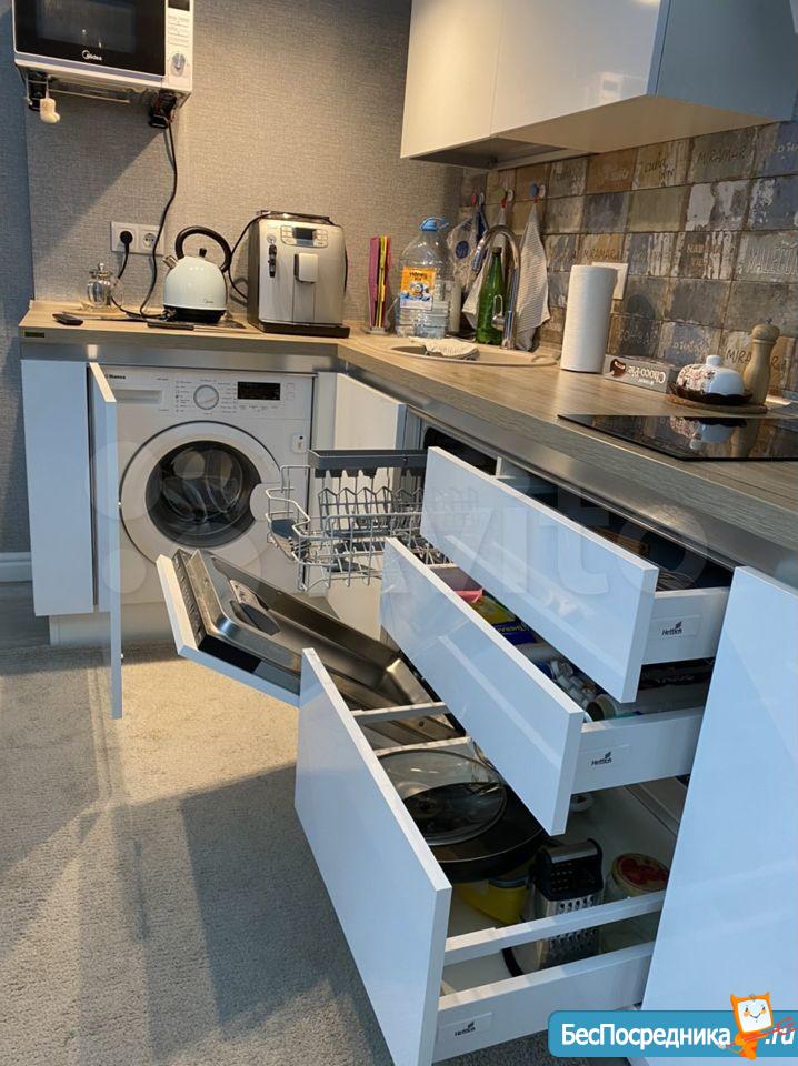 В квартире вся техника новая: кондиционер, wi-fi, холодильник, встроенная посудомоечная машина, встроенная микроволновка, измельчитель пищевых отходов, стиральная машина, два телевизора.