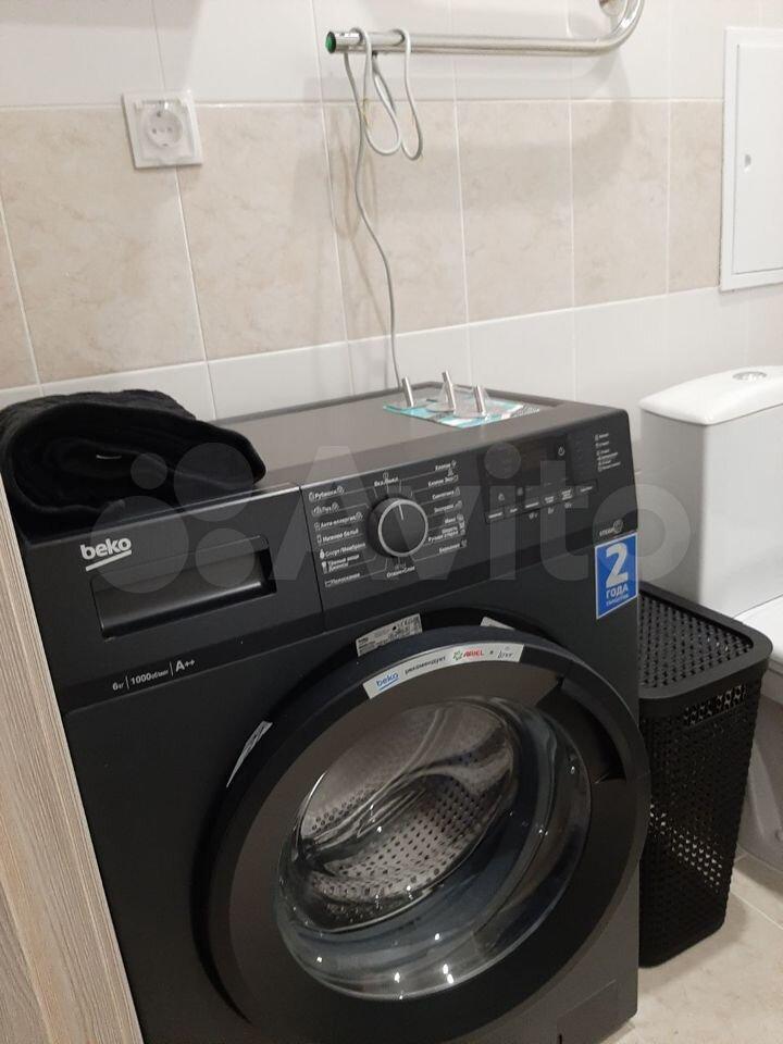 холодильник, плита, микроволновка, стиральная машина, телевизор.