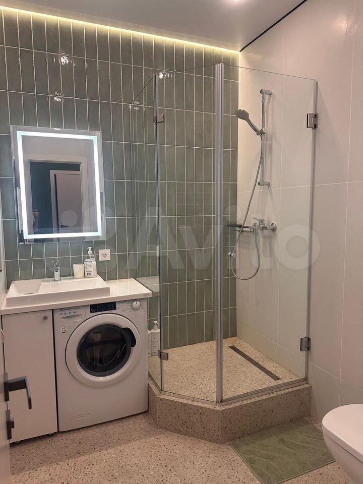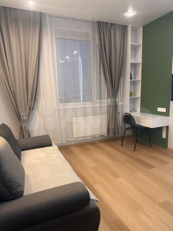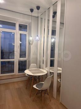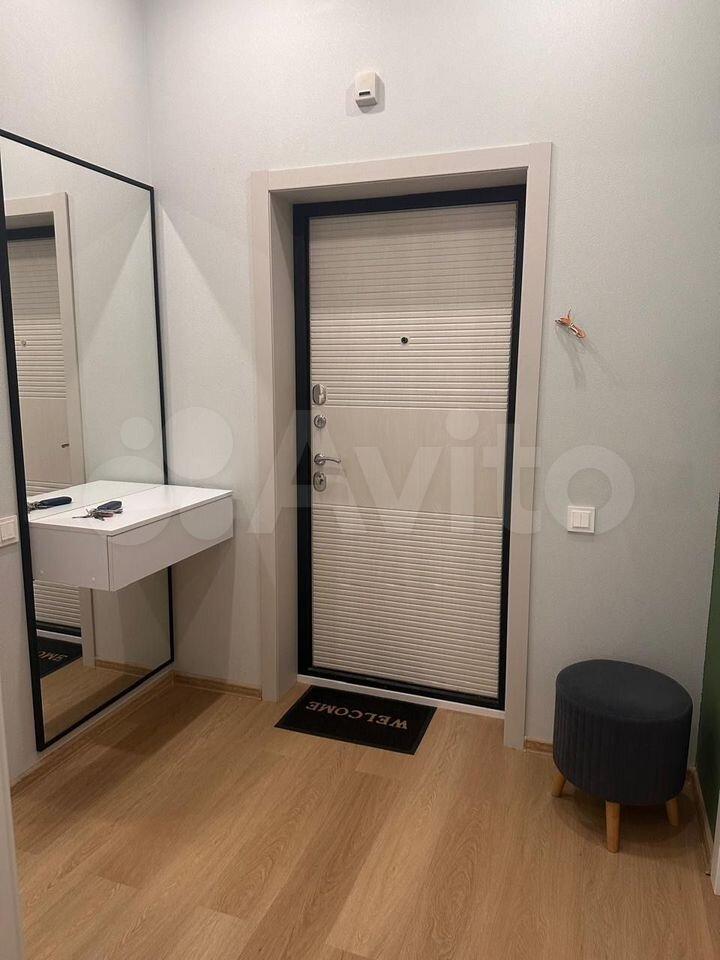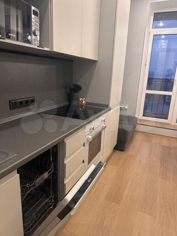 Встроенная мебель: шкаф купе полностью зеркальный, кухонный гарнитур, гарнитур в ванной комнате. В гостиной встроенная ты тумба и трёхстворчатый шкаф для одежды, новая двуспальная кровать с ортопедическим матрасом с независимыми пружинами (ширина 160 см). Техника: встроенная варочная панель индукционная с тремя конфорками, встроенный духовой шкаф. Оплата 39 000 руб. в месяц, к/у отдельно, ориентировочно 3500руб.