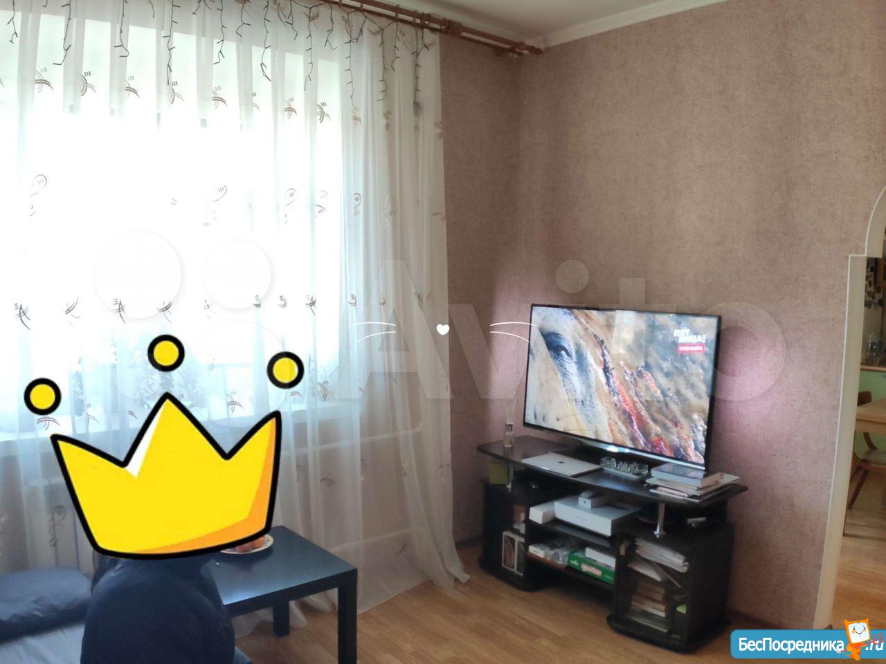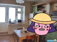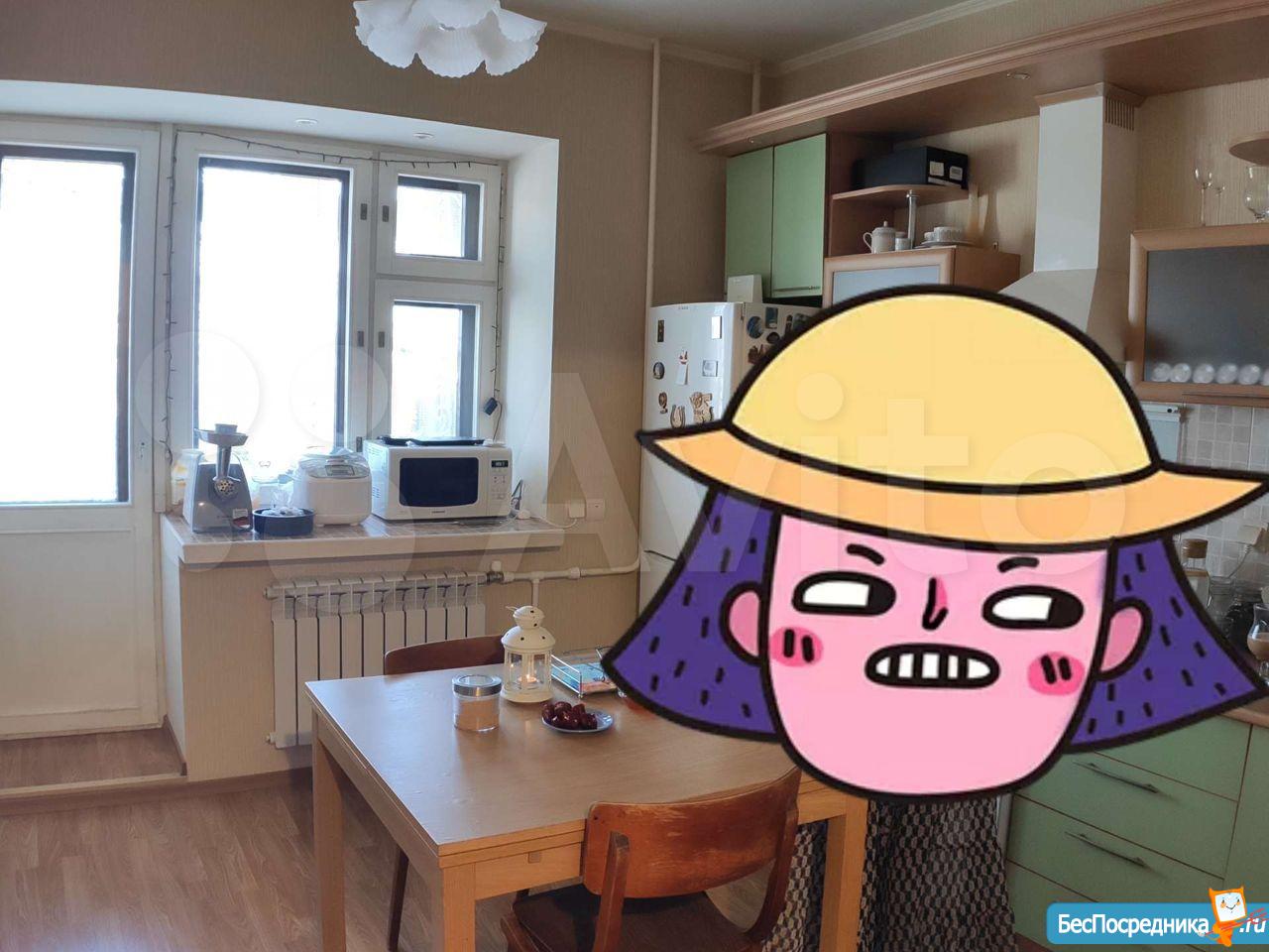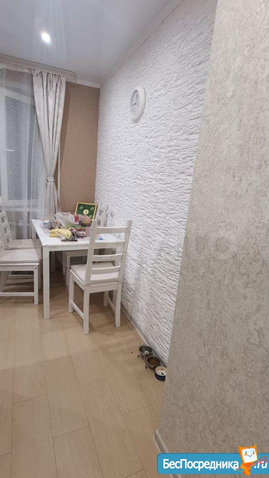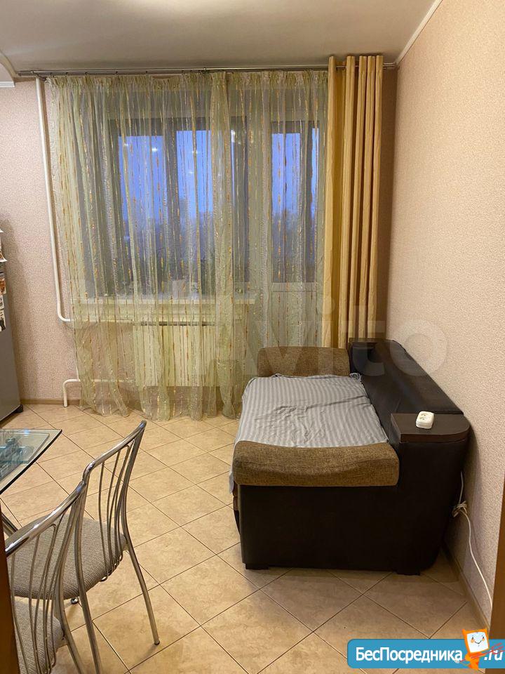 В квартире выполнен косметический ремонт. Просторная кухня площадью 9 м² оснащена необходимой бытовой техникой, включая холодильник. Из мебели — шкафы и диван.