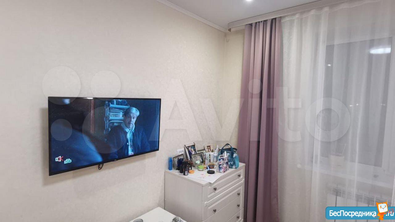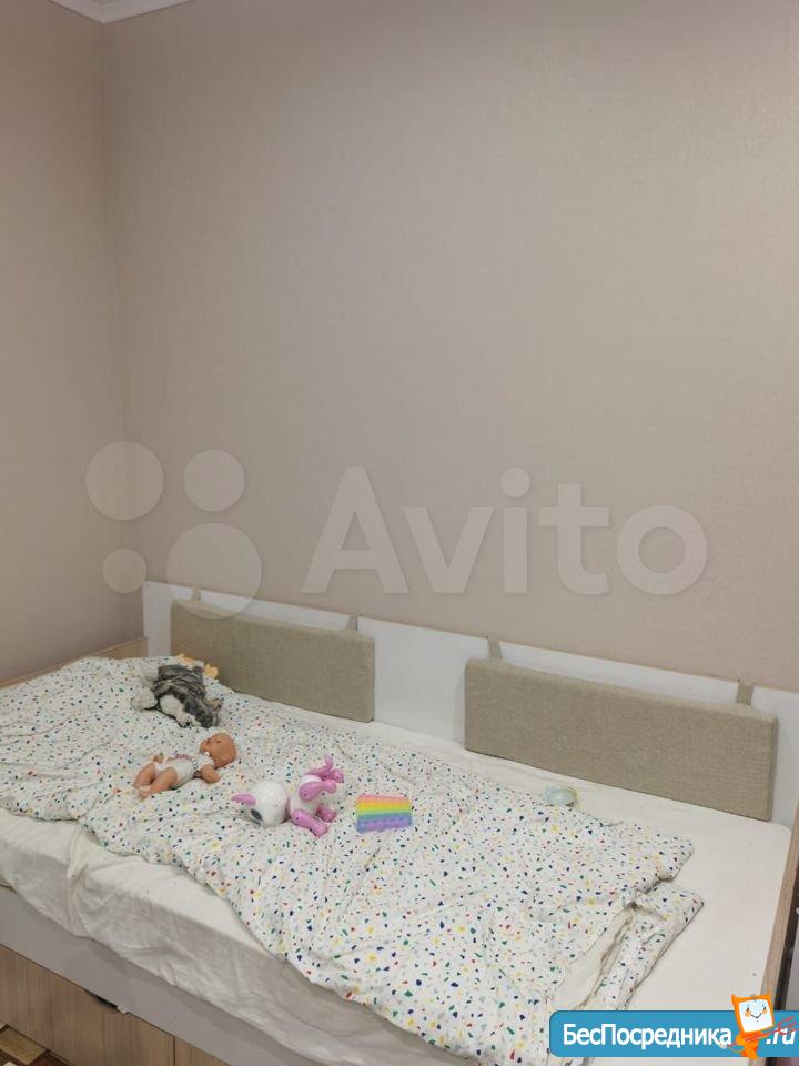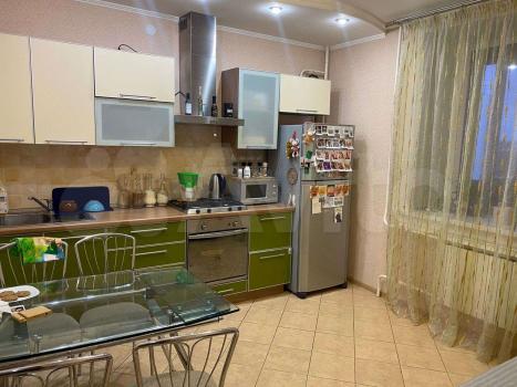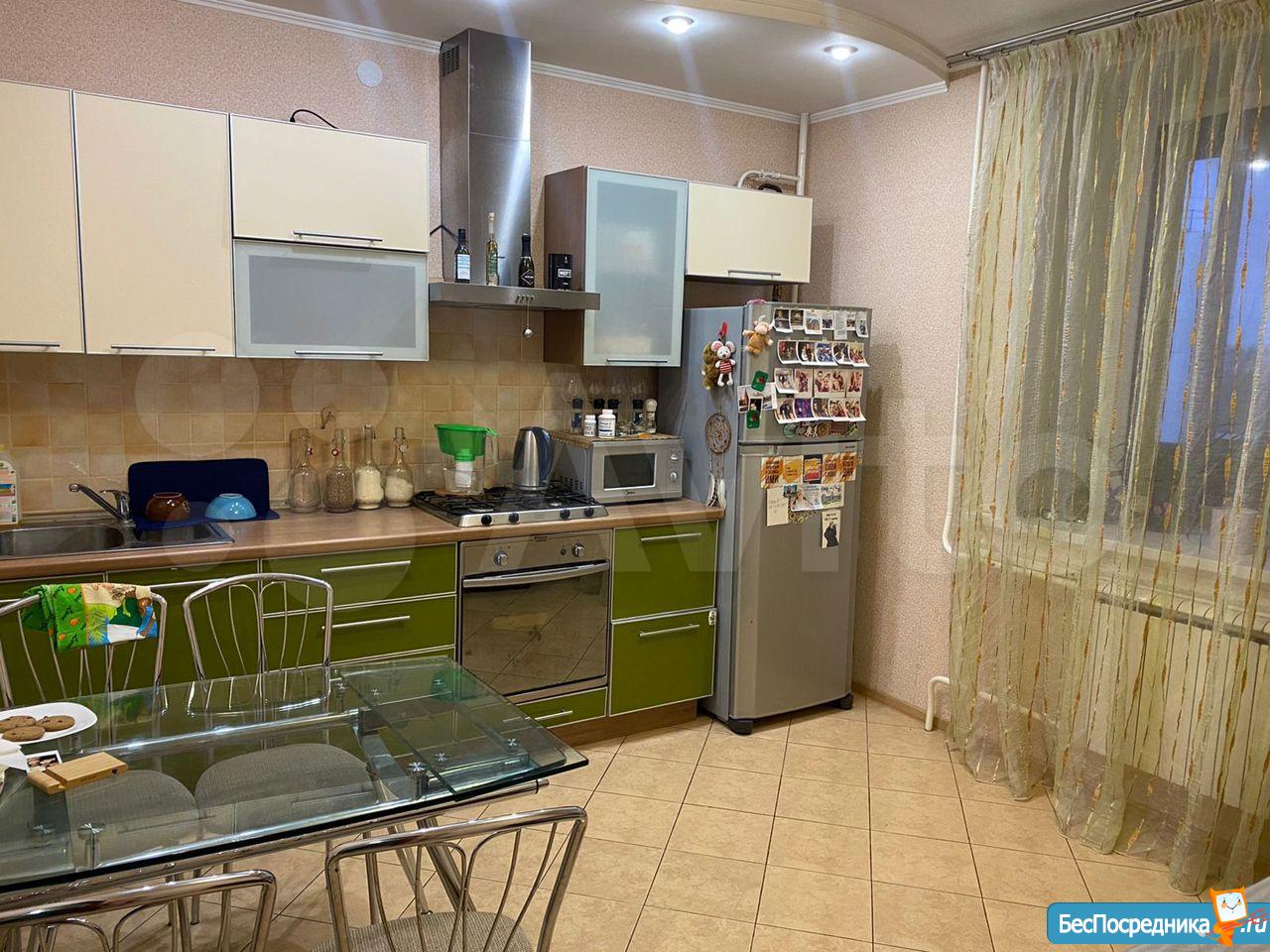 В квартире выполнен косметический ремонт. Просторная кухня площадью 9 м² оснащена необходимой бытовой техникой, включая холодильник. Из мебели — шкафы и диван.