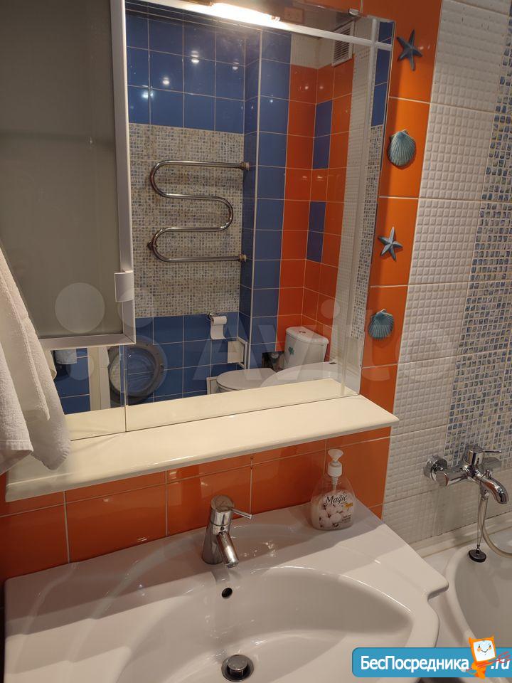 Санузел совмещённый, оборудован ванной и стиральной машиной. В комнате установлен шкаф и удобный раскладной двуспальный диван.