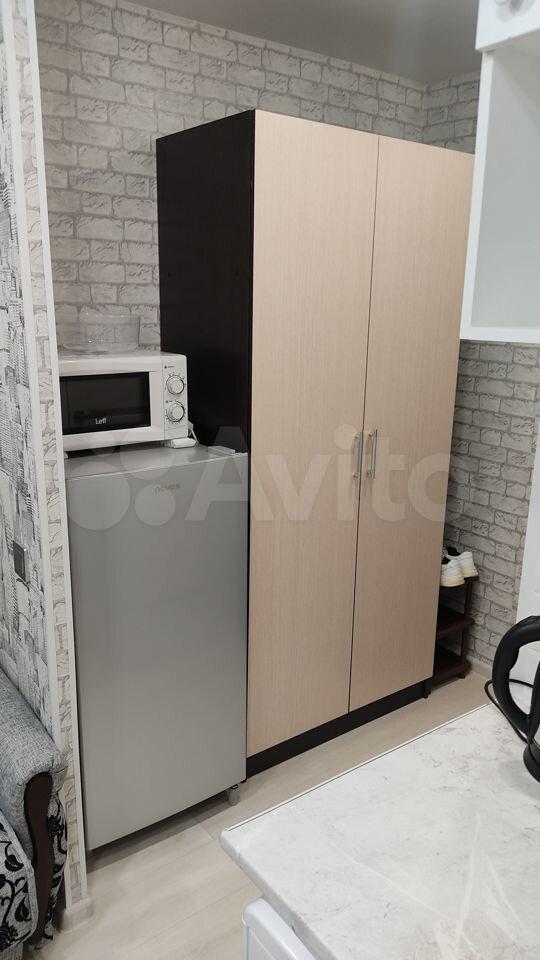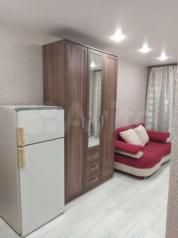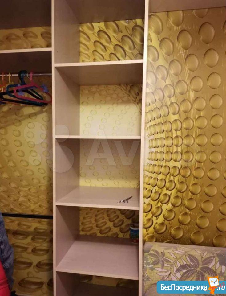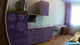 В комнате имеется шкаф - купе, кровать, тумбочка, телевизор, холодильник, кухонный гарнитур.