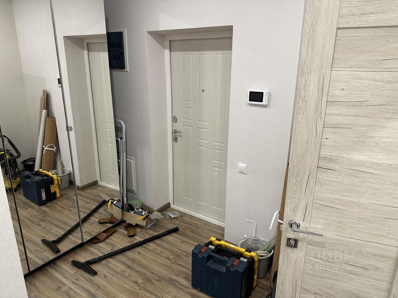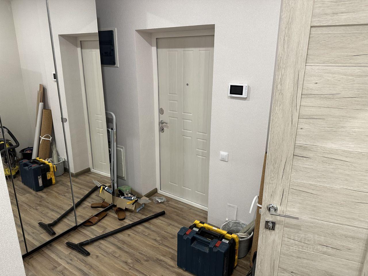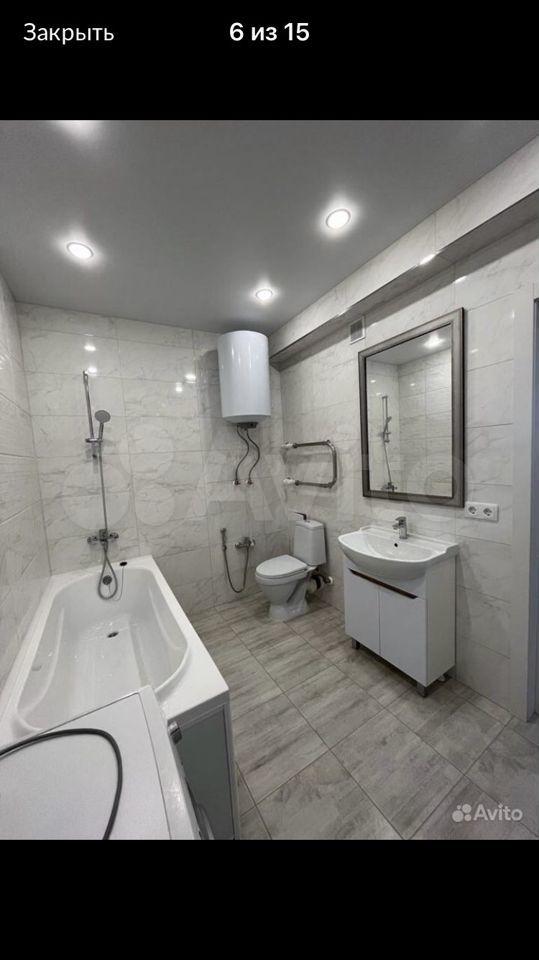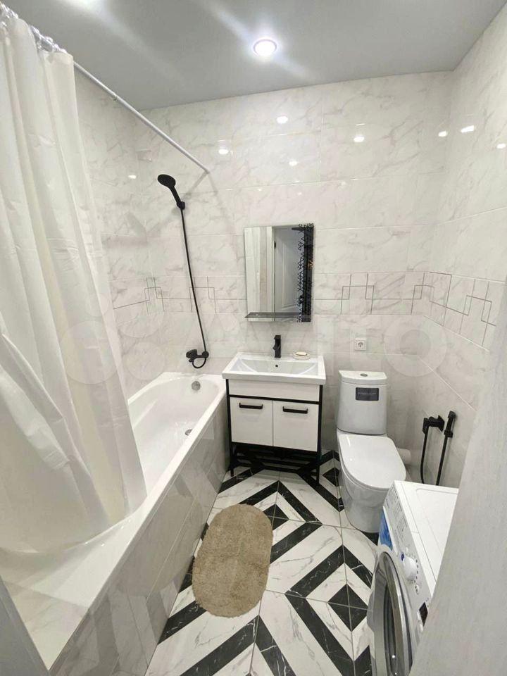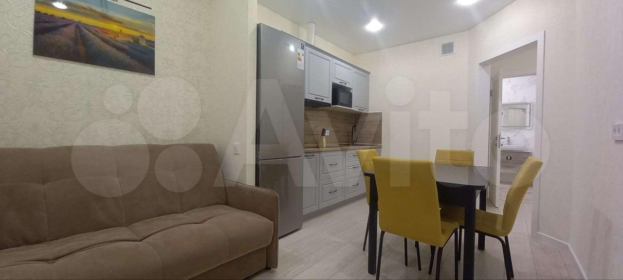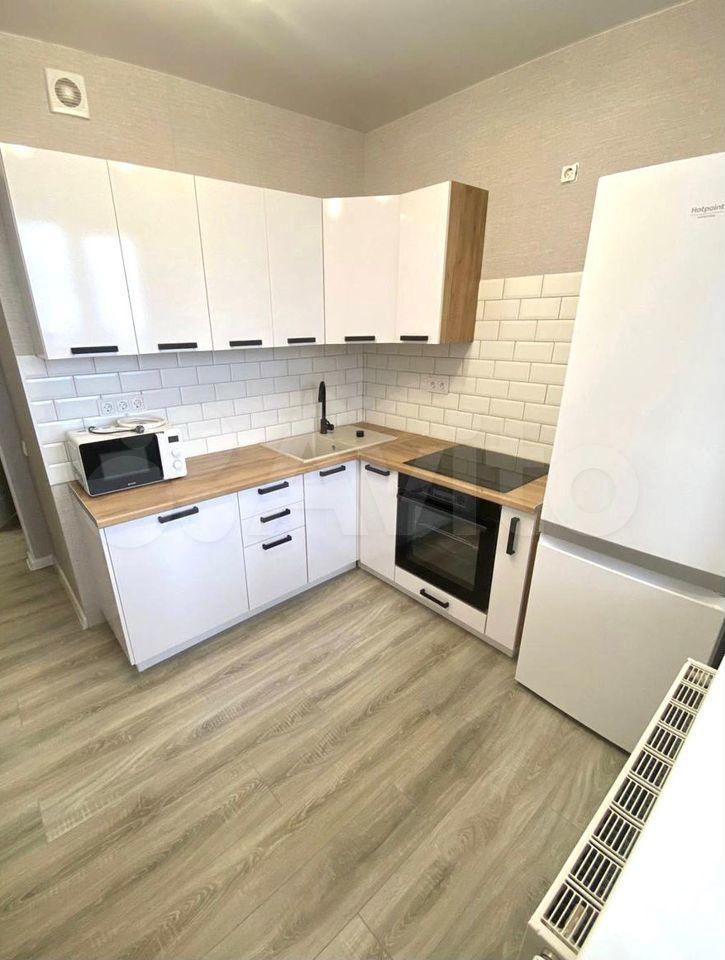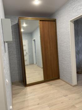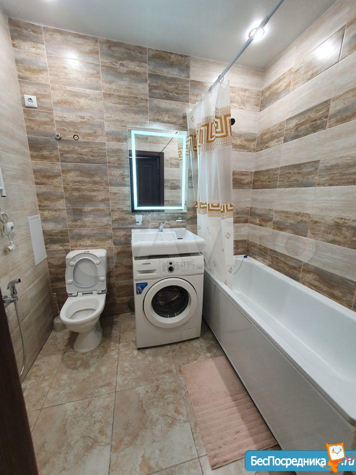 В квартире сделан евро-ремонт, есть все необходимое для проживания: холодильник, индукционная плита, стиральная машина, диван, стеллаж, встроенный шкаф-купе, душевая кабина.