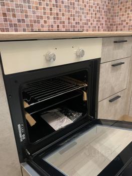- в кухне подключен фильтр для воды, будет подключена посудомоечная машина, вытяжка, есть электрическая плита на три конфорки, духовка, холодильник, стол и стулья;