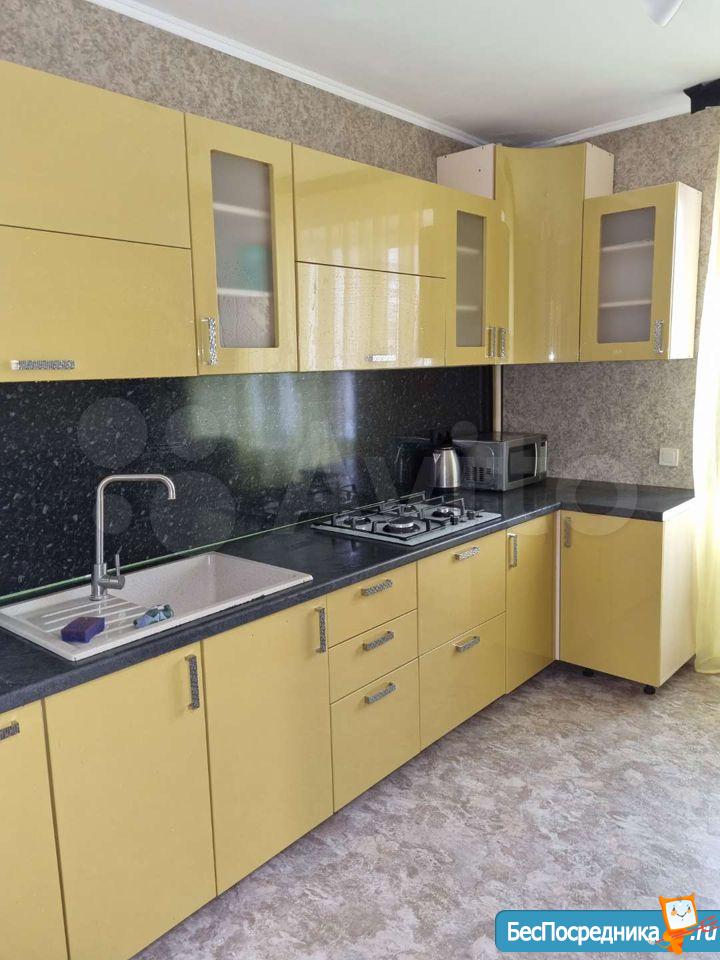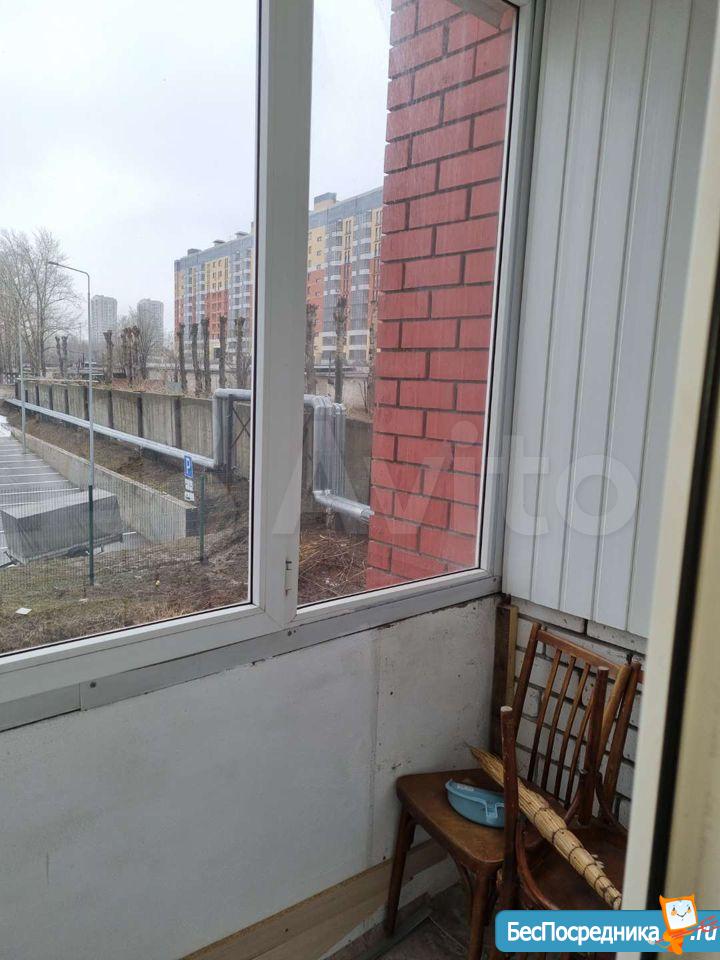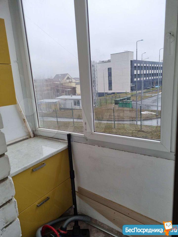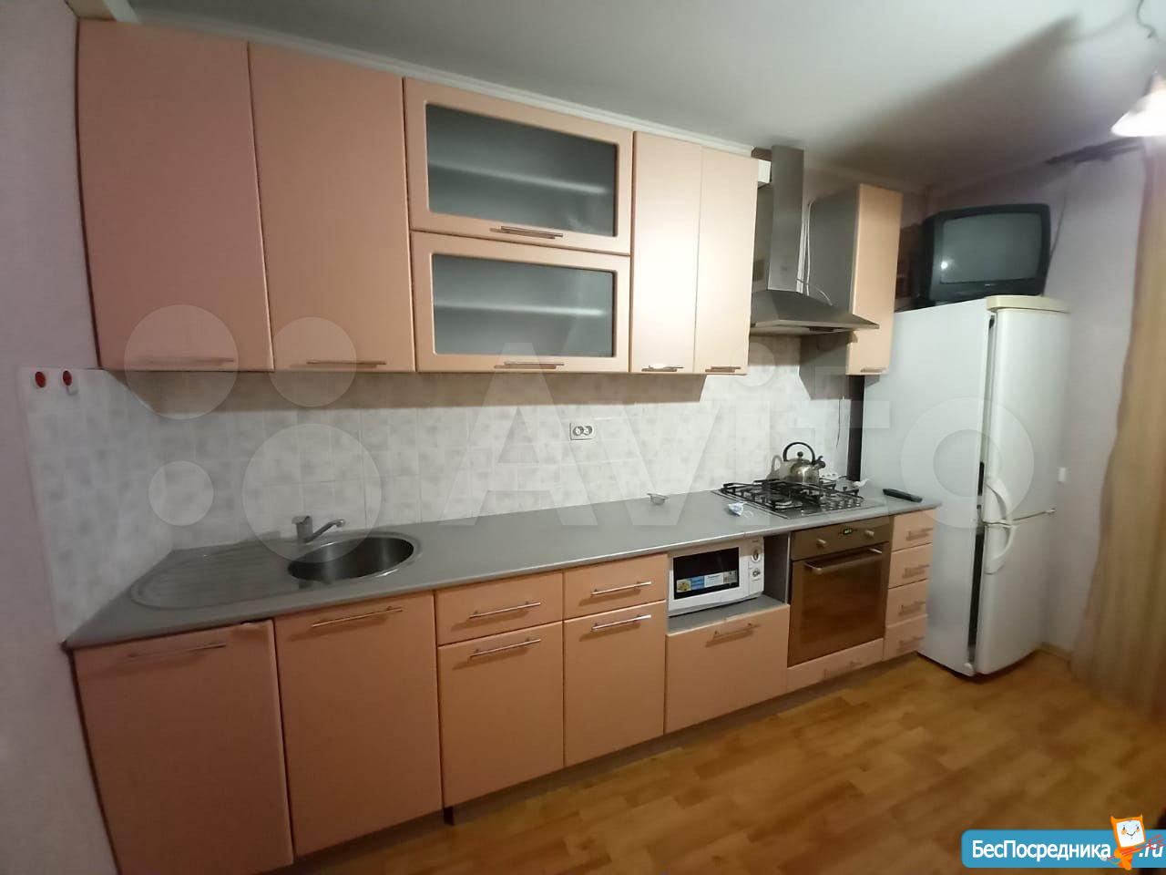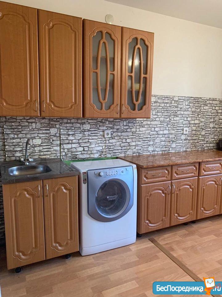 Светлая, уютная студия с зоной для рабочего места и большим встроенным шкафом-купе. Кухня с выходом на застекленную лоджию. Плита газовая, духовка рабочая. Холодильник, микроволновка.