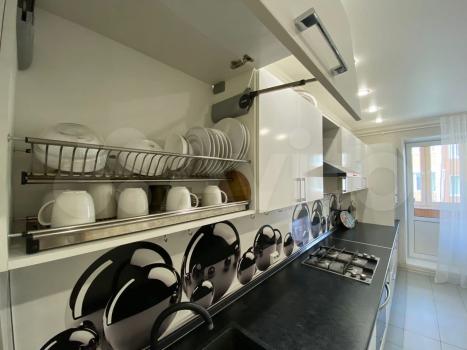 Квартира полностью оборудована для комфортного проживания семье (можно с детьми). Есть стиральная машина, плита газовая, электрический духовой шкаф, микроволновая печь, большой холодильник двухкамерный. Столы и стулья. Диван в зале и кровать в спальне. В коридоре большая гардеробная.