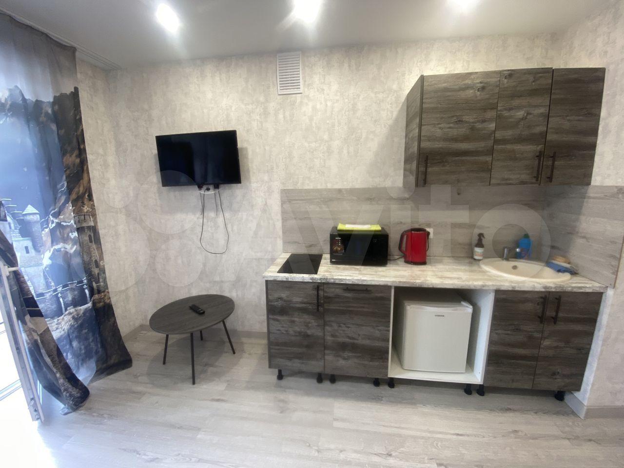 Есть все для комфортного проживания: шкаф, диван, кухонный гарнитур, телевизор, интернет.