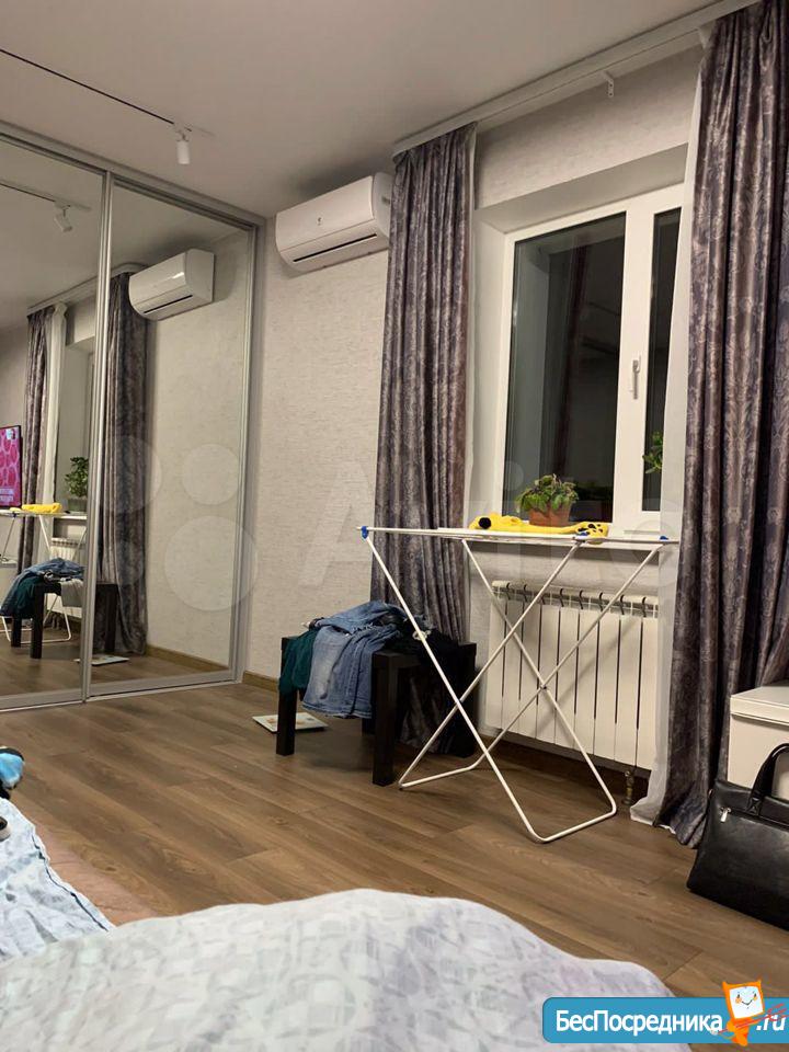 В квартире сделан современный ремонт, установлена необходимая мебель как на кухне, так и в комнате. В вашем распоряжении есть вся необходимая техника: кондиционер, холодильник, телевизор и стиральная машина. Санузел совмещённый, оборудован ванной. Окна выходят во двор, поэтому в квартире всегда тихо и спокойно. Высота потолков — 2.7 метра, что добавляет ощущение пространства и комфорта. Также имеется балкон, где можно насладиться свежим воздухом.