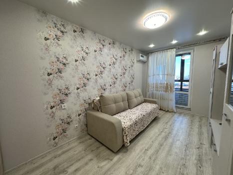 Сдается уютная квартира на долгий срок в новом ЖК Мечта . Кухня - гостиная оснащена мебелью и техникой, а также есть спальное место . Спальня изолированная с кондиционером и гардеробной системой .