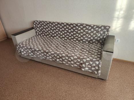- Мeбeль в жилoй кoмнaте:двуспaльнaя кpовaть с удобным матрасом , вместительный шкаф,стеллаж, так же привезем раскладной диван