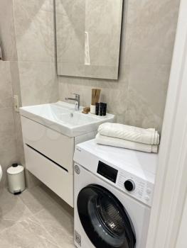Вся мебель новая: кровать с матрасом Аskоnа, удобный диван с независимым блоком пружин, встроенная кухня в потолок, 2 встроенных шкафа в коридоре и спальной комнате, встроенная мебель в ванной комнате. Квартира имеет множество сценариев освещения: люстра над обеденной зоной, подсветка рабочей поверхности кухни, подсветка в гостиной зоне, подсветка в спальне, общий точечный свет отдельно в каждой зоне. Квартира укомплектована качественной сантехникой.
