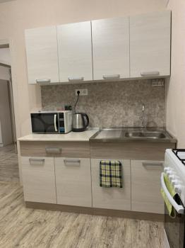 Есть все для Вашего комфортного проживания, расположена на 3 этаже. Просторная кухня, холодильник, микроволновая печь, чайник, стиральная машина, шкаф, ровный диван раскладной, wi-fi.
