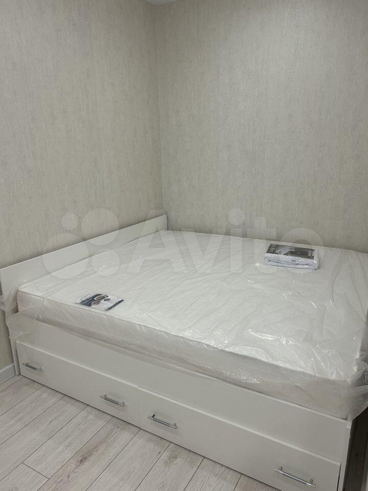 Холодильник, плита, стиральная машина кровать 2м на 1,8м с ортопедическим матрасом, телевизор, кондиционер, шкафы для одежды.