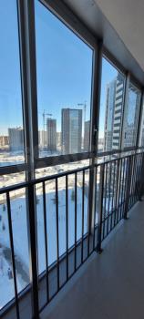 Большая лоджия с панорамным остеклением, панорамное окно!Ремонт выполнен в светлых, тёплых тонах.