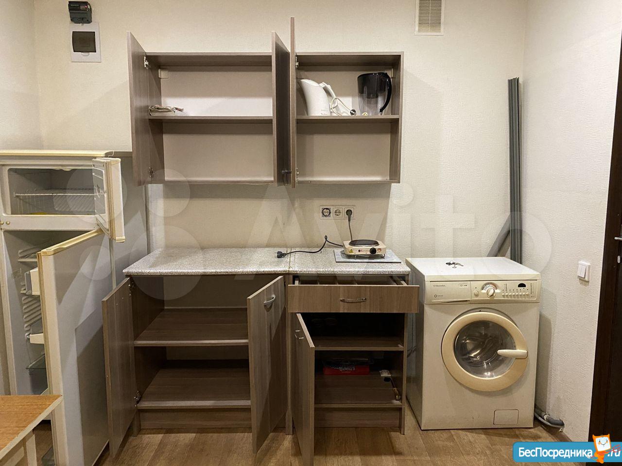 в квартире есть большой шкаф, микроволновка ,стол, стиральная машина, холодильника нет. +комуналка 2т.р