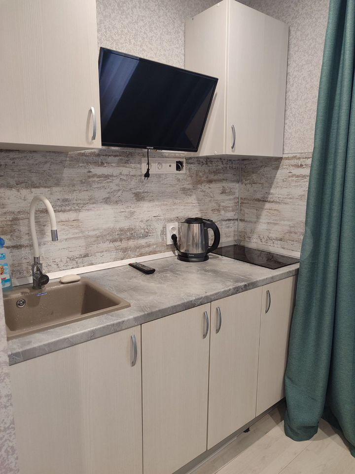 Сдаётся уютная небольшая студия с абсолютно новым ремонтом и мебелью. Свой санузел.