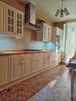 Мебель: кухонный гарнитур, обеденный стол и стулья, большой вместительный шкаф-купе в прихожей, стеллаж, кровать двухместная, диван раскладывающийся на 2 спальных места, комод, письменный стол. При необходимости обсуждаема покупка недостающей мебели.
