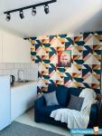 Уютная и стильная студия рядом с метро Яшьлек. ( 2 минуты пешком) В квартире выполнен качественный ремонт, раскладной диван, холодильник, кухонный гарнитур, ванна с душевой комната со стильным дизайном. Стиральная машина общая на 4 комнаты.
