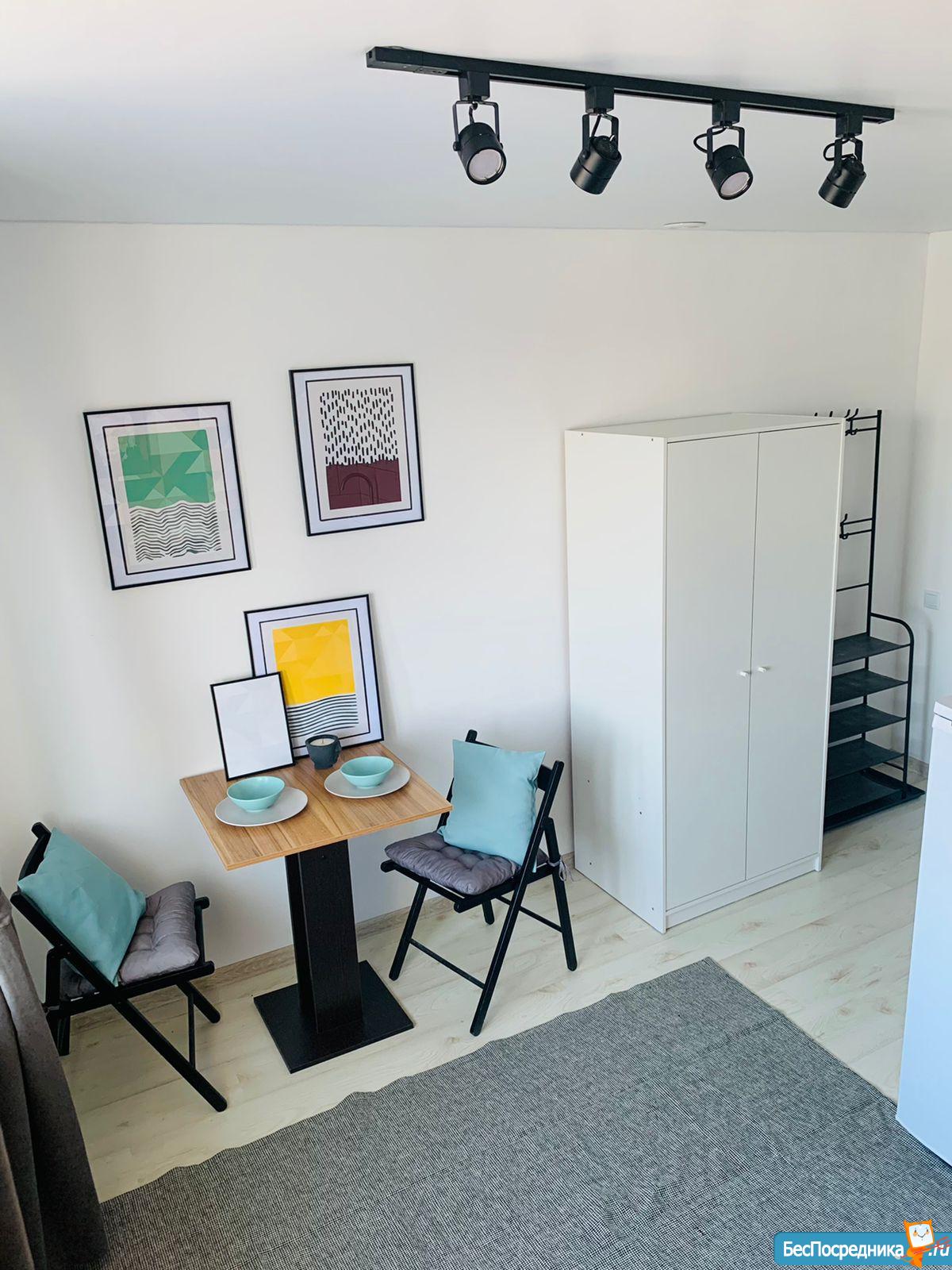. Студия не большая и комфортна для проживания 1 человеку.