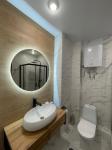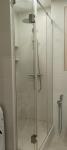 Ванная комната с парящим потолком, душевая кабина с небольшим подъемом 120 на90( тропический и обычный душ).