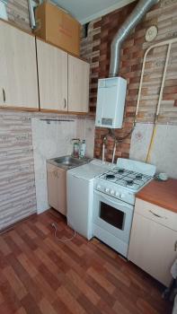 Сталинка, 30 кв.м. Дизайнерский ремонт, высокие потолоки. 8 минут пешком до метро Яшьлек и Северный вокзал. Есть всё необходимое: мебель, стиралка, холодильник, микроволновка, кондиционер. Можно жить вдвоём. Есть раскладной диван и спальное место на втором ярусе (3 фото).