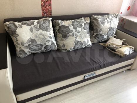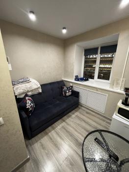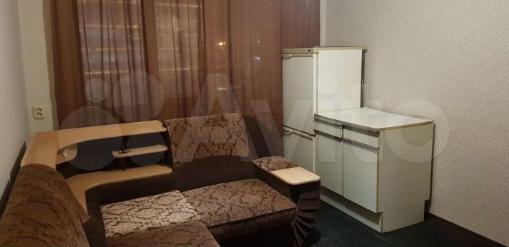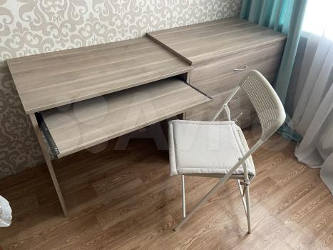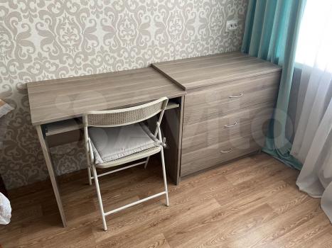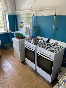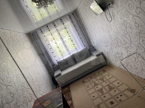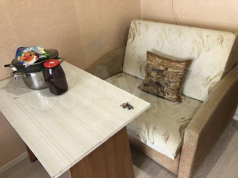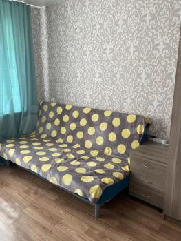 Koмната со всеми удобствами. Мебель остаётся: раскладной диван, кухонная гарнитура, кухонный стол, 3 раскладных стула, тумба, холодильник с морозильником, компьютерный стол, комод. Также имеются электронный чайник, сушилка для белья, гладильная доска и утюг, стиральная машина.
