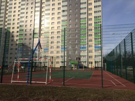 Расположена в современном жилом комплексе, тихий район, семейные соседи, благоустроенный двор с детской и спортивной площадками, чистый подъезд. В доме два лифта, один грузовой.