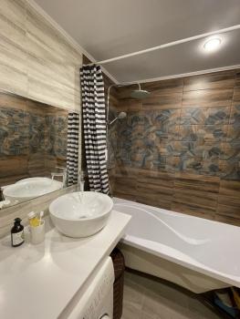Очень светлая квартира с дизайнерским ремонтом. Есть все необходимое для комфортного проживания. Кухонный гарнитур, стиральная и посудомоечная машины, шкафы, комоды, диван и кровать.