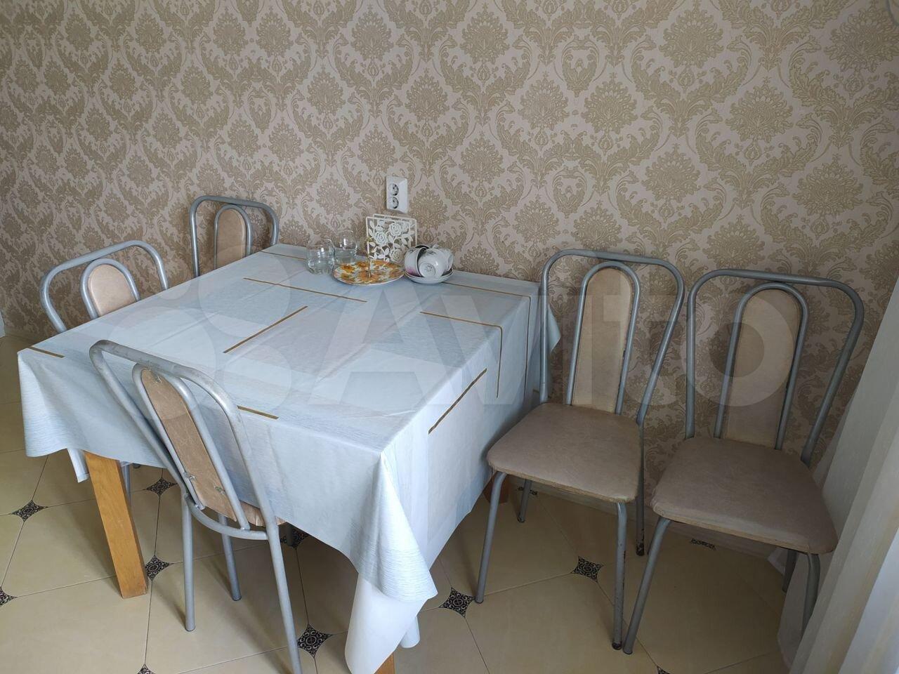 Имеются большой холодильник с морозильной камерой, стиральная машина, кухонный гарнитур, электрическая плита, электрический чайник, 2 стола, 9 стульев, 2 двуспальных дивана-кровати, комод, оборудованный гардероб, ЖК телевизор, музыкальный проигрыватель. Всё в хорошем состоянии.