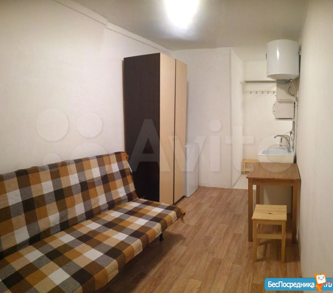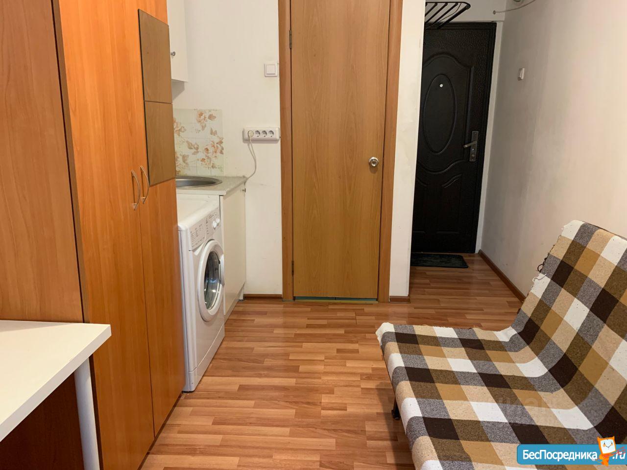 Собственник, фото и видео реальные. Сдается ОДНОМУ (не двум и не трем) жильцу аналог гостинки с собственным санузлом и душем. Студия со всей необходимой техникой (стиральная машина, микроволновка, холодильник, электрочайник, собственный водонагреватель - горячая вода есть всегда), кроме плиты (установить нельзя, можно приехать со своей мультиваркой). Высокоскоростной Wi-fi (оптоволокно) включен в стоимость.Натяжные потолки, полы ламинат, пластиковое окно, на окне жалюзи, раскладывающийся диван Икея, кухонный уголок, большой шкаф для одежды, шкаф для посуды, стол, табурет.Высокий первый этаж, окна выходят в тихий двор без машин. Транспорт во все части города, 3 минуты пешком до входа в метро, напротив парк. В стоимость включено все, кроме электричества (оплачиваете по счетчику).Страховой депозит 7500 рублей (платится при вселении, возвращается при расторжении договора при выезде не ранее чем через 5 месяцев).Просьба звонить с 9.00 до 21.00 часа
