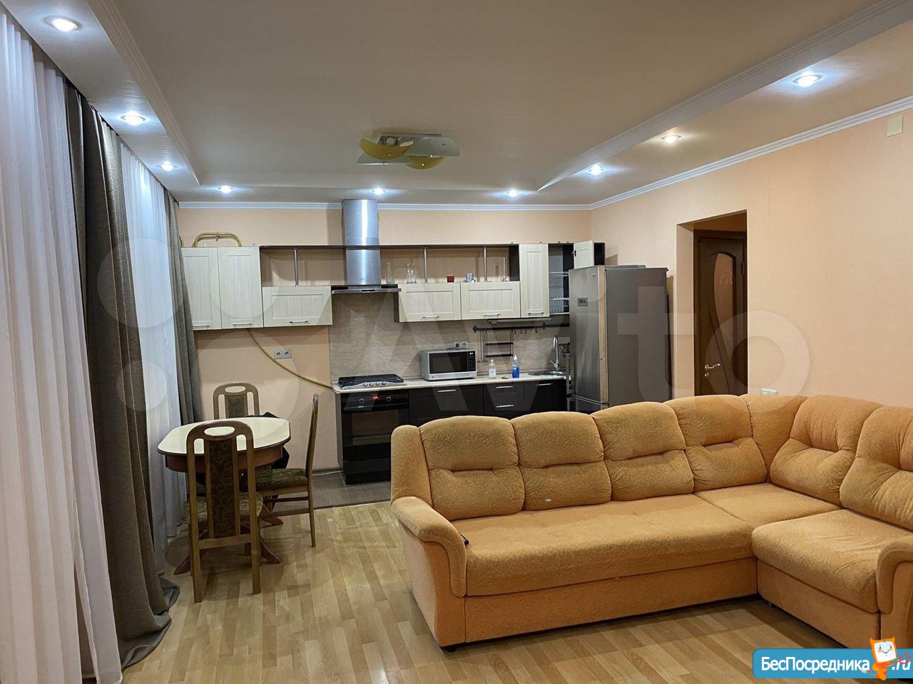 Сдаю уютную, светлую, тёплую квартиру с новым ремонтом, ранее не сдавалась никогда! БЕЗ комиссии! Большие комнаты, две большие лоджии, санузел раздельный, вся необходимая мебель, техника, новый кондиционер, посудомойка, стиральная машина, ТВ - 2 шт., бойлеры - 2 шт, холодильник LG, интернет - УФАНЕТ, СВЧ-печь, Эл. Духовой шкаф, новая газовая варочная поверхность, горячая и холодная вода, центральное отопление, закрытый двор (шлагбаум), только было проведено благоустройство двора, новый асфальт, около дома новая детская площадка, спорт.инвентарь. Рядом магазины, почта, детские сады, школы, остановки общественного транспорта. Недалеко кафе и рестораны. Высокий первый этаж над цокольным, в котором управл.компания, а также в здании есть фитнес-зал, клуб бокса, стоматология. Во дворе большая закрытая парковка для жильцов дома. Дом кирпичный.