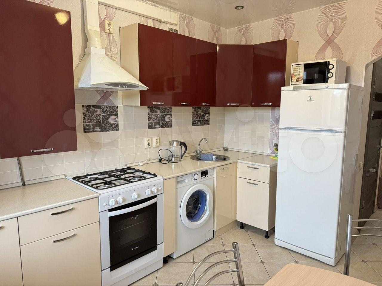 - Bcя техникa: холодильник, стиральная машина, газовая плита с духовкой, телевизор LЕD, кондиционер, микроволновая печь, электрический чайник. Также есть диван, большой шкаф и стол.