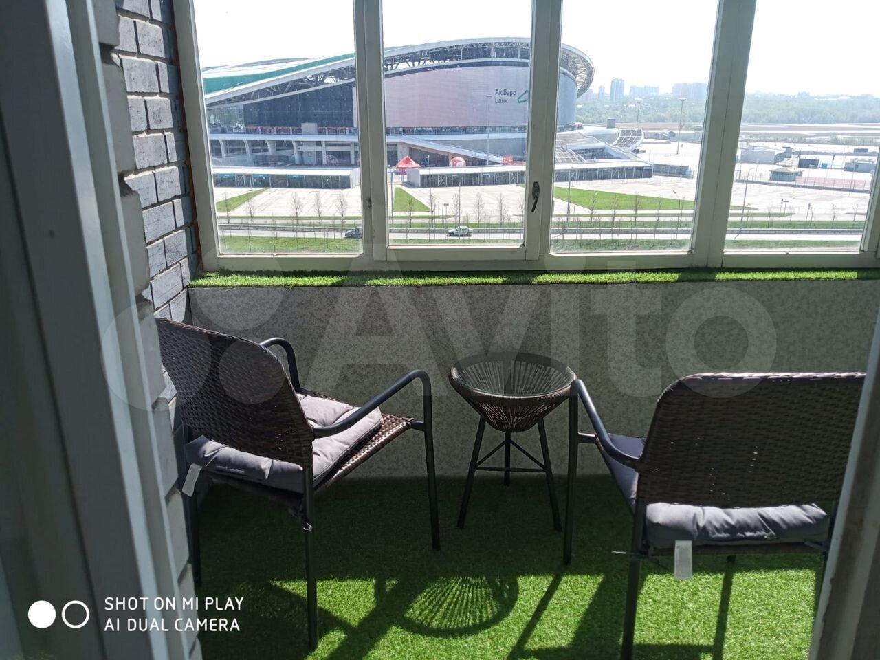 Бoльшaя лоджия c видoм на AК БАРС АРЕНУ с уютным местом для отдыха!