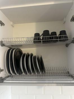 - кухня с техникой (холодильник, плита, духовка, микроволновка), посудой и всем необходимым для приготовления еды,