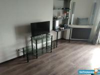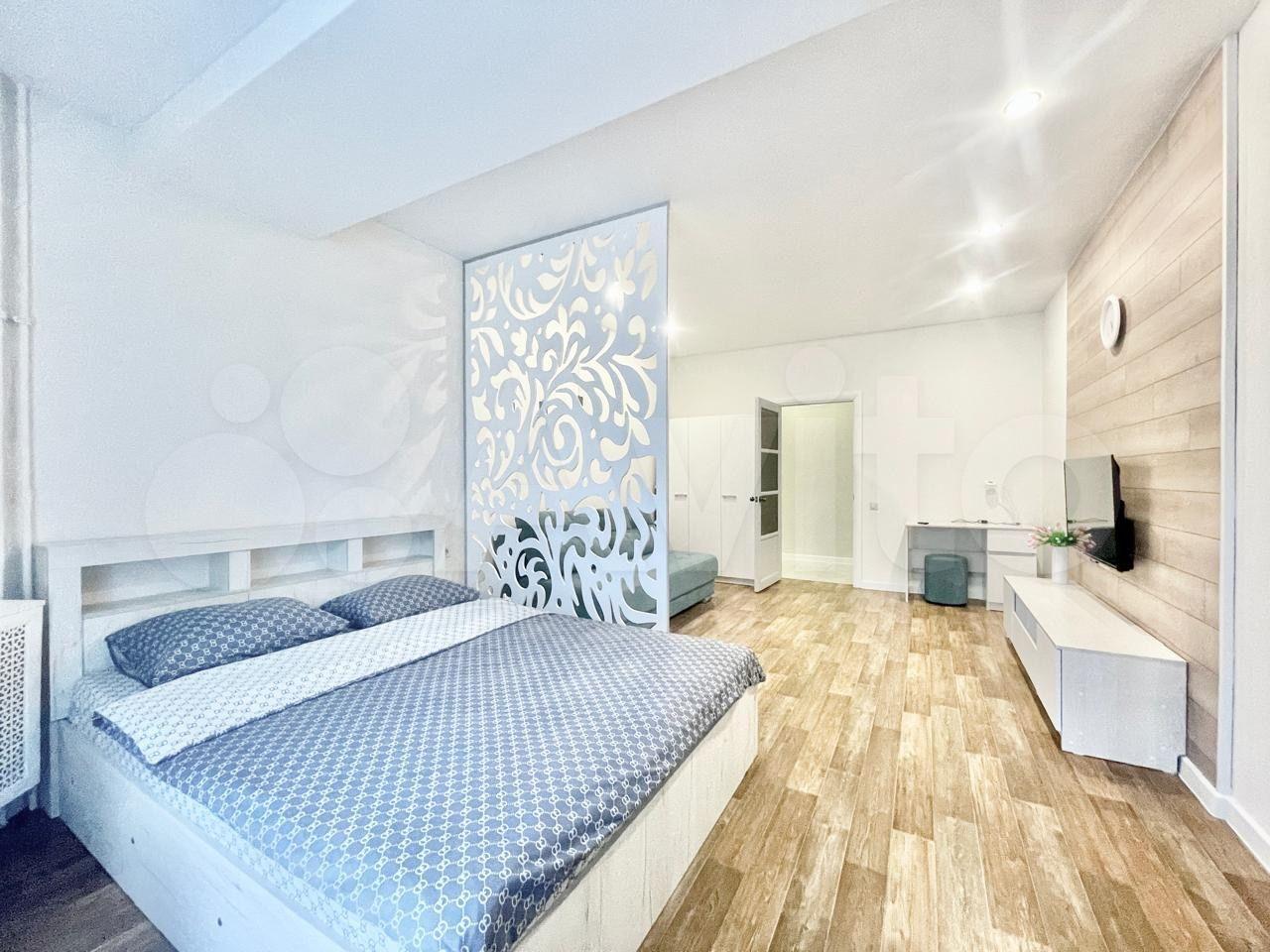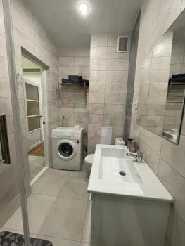 Однокомнатная, переделанная в двухкомнатную. Полы - ламинат, интернет, кабельное телевидение. На кухне кухонный гарнитур + техника (холодильник, плита, вытяжка, микроволновая печь, эл.чайник). В зале (гостиная) журнальный стол, телевизор, диван раскладной, рабочая зона. В спальне большая гардеробная, двуспальная кровать (выход из спальни через зал). Санузел совмещенный в кафеле + стиральная машина. Есть балкон.
